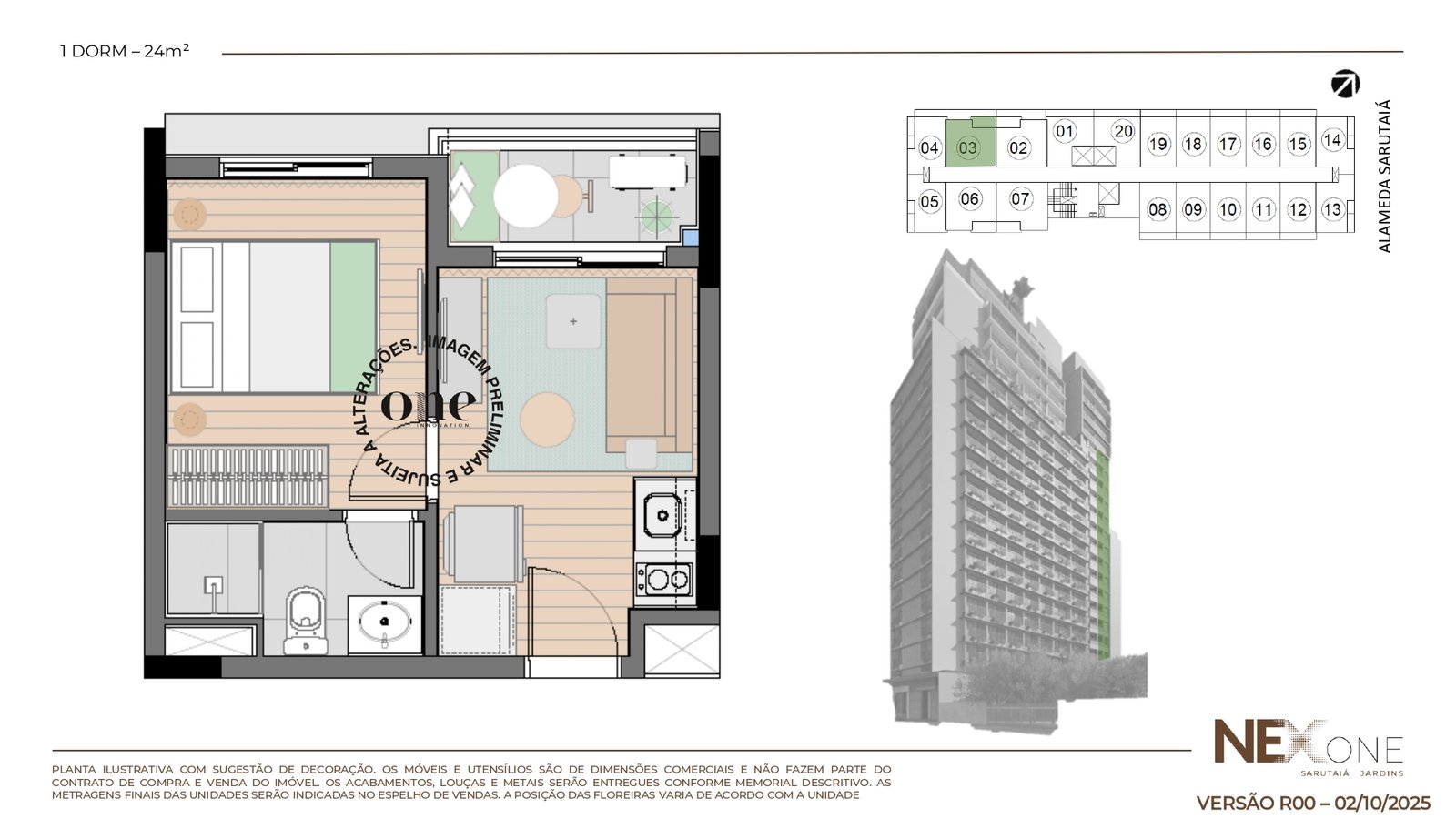 - 1 Dorm. 24 a 31m2 – 64 unid.